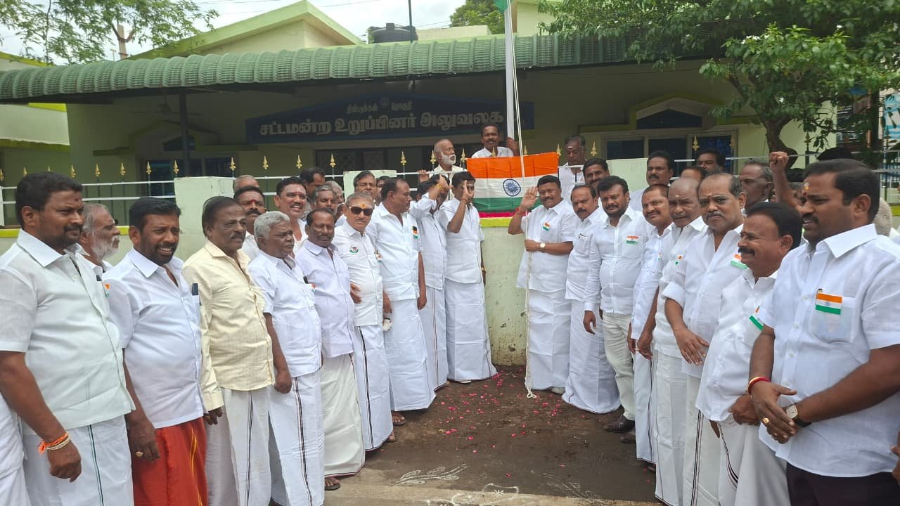 திண்டுக்கல் சட்டமன்ற உறுப்பினர் அலுவலகத்தில் திண்டுக்கல் அதிமுக மேற்கு மாவட்டம் சார்பாக அதிமுக பொருளாளர் சீனிவாசன் தேசிய கொடியை ஏற்றி வைத்து மரியாதை செலுத்தி இனிப்புகள் வழங்கினார்.
