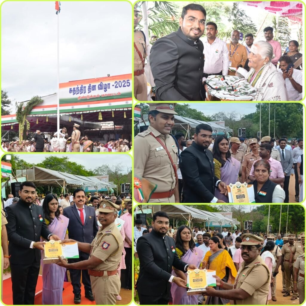 திண்டுக்கல் மாவட்ட விளையாட்டு மைதானத்தில், சுதந்திர தின விழா கொண்டாடப்பட்டது. மாவட்ட ஆட்சியர் தேசியக் கொடியை ஏற்றி வைத்து மரியாதை செலுத்தினார்.