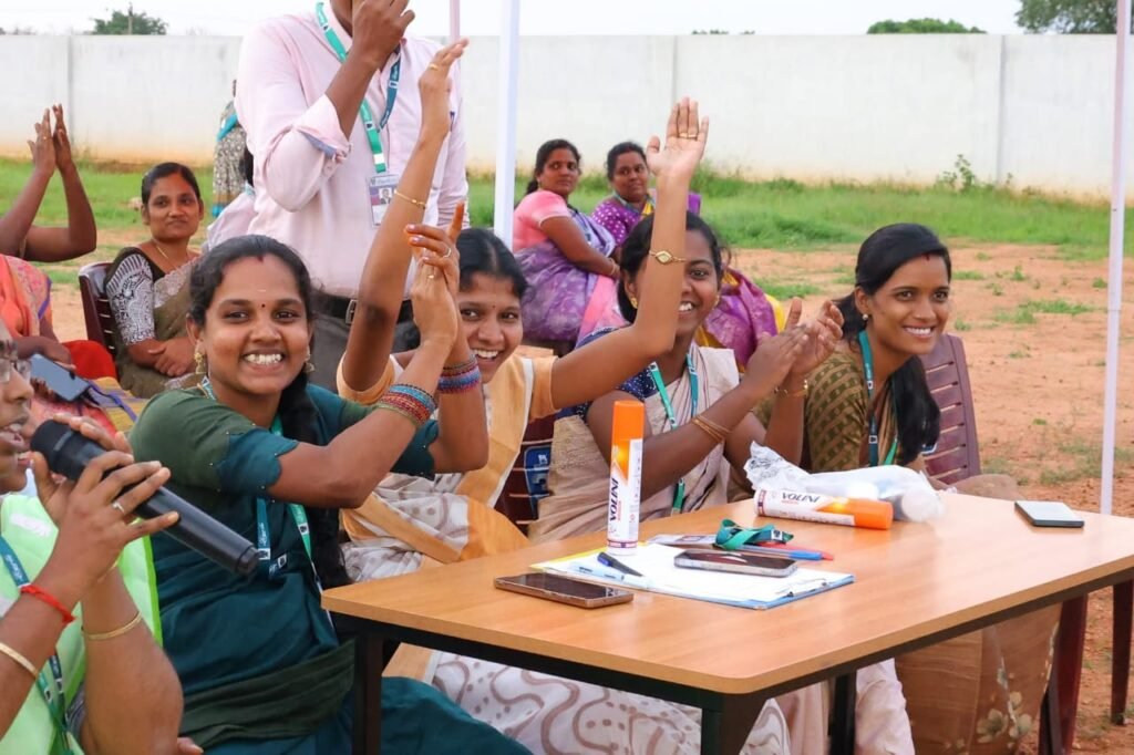 விளையாட்டுப் போட்டியில் கலந்து கொண்ட தங்களது பெற்றோர்களை உற்சாக ப்படுத்தும் விதமாக மாணவர்கள் கரகோஷம் எழுப்பி உற்சாகப்படுத்தினர்