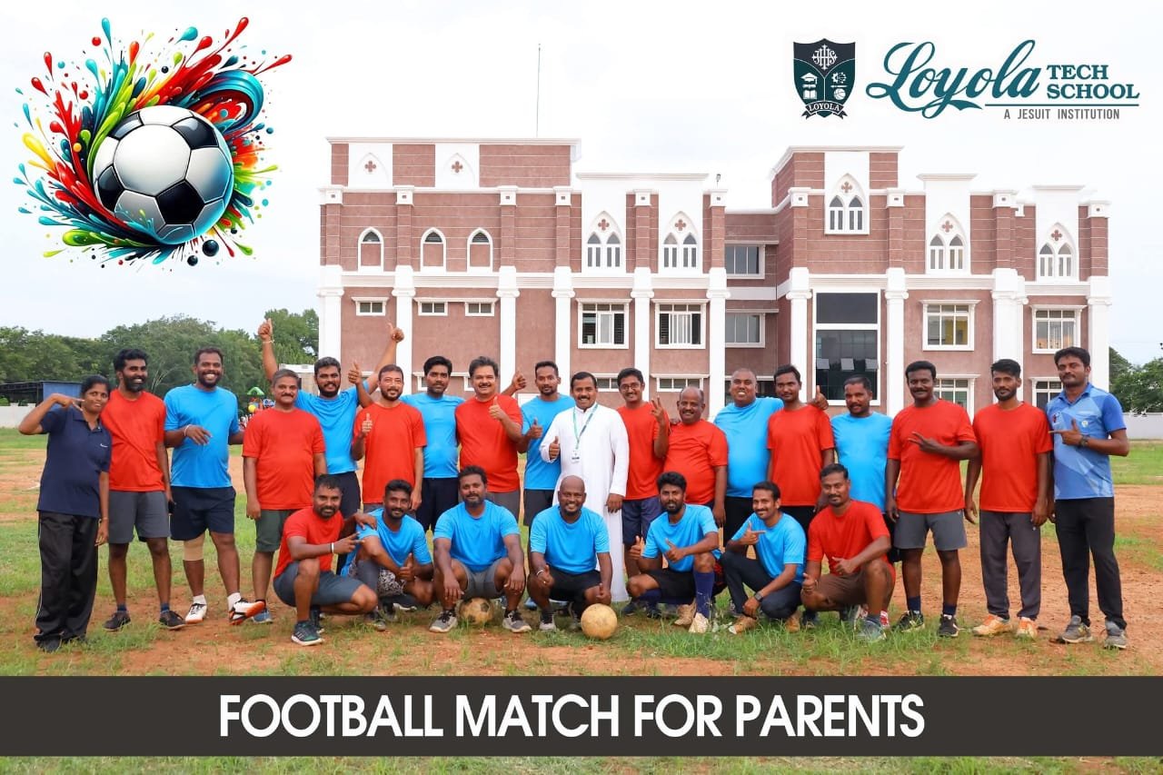 திண்டுக்கல் லயோலா டெக் பள்ளியில் பெற்றோர்களுக்கான 2025 கால்பந்து போட்டி நடைபெற்றது விளையாட்டு போட்டியில் இரண்டு அணிகளாக நீல நிறம் மற்றும் சிகப்பு நிற அணிகளாக மொத்தம் 24 பெற்றோர்கள் கலந்து கொண்டார்கள்..